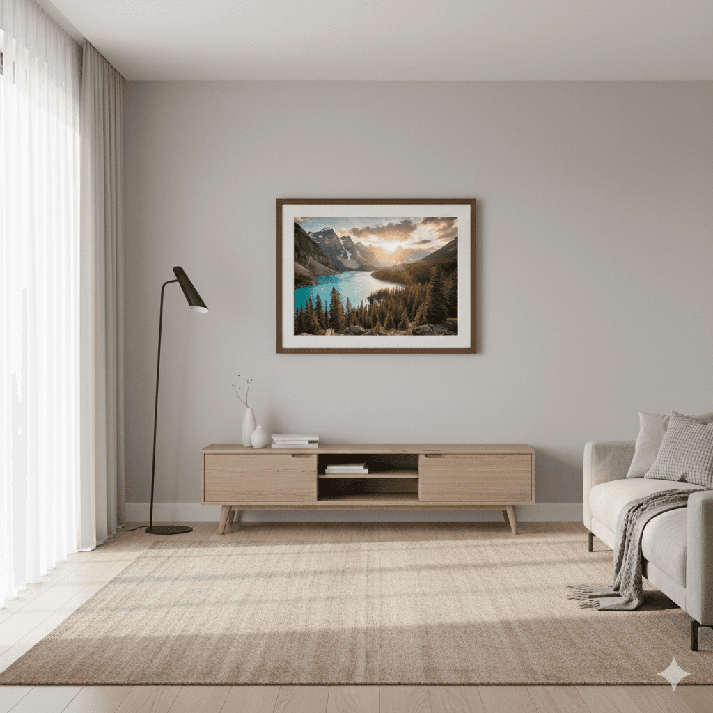 “The print feels serene and intentional. The frame craftsmanship is remarkable — understated but commanding presence. It transformed the entire room.”