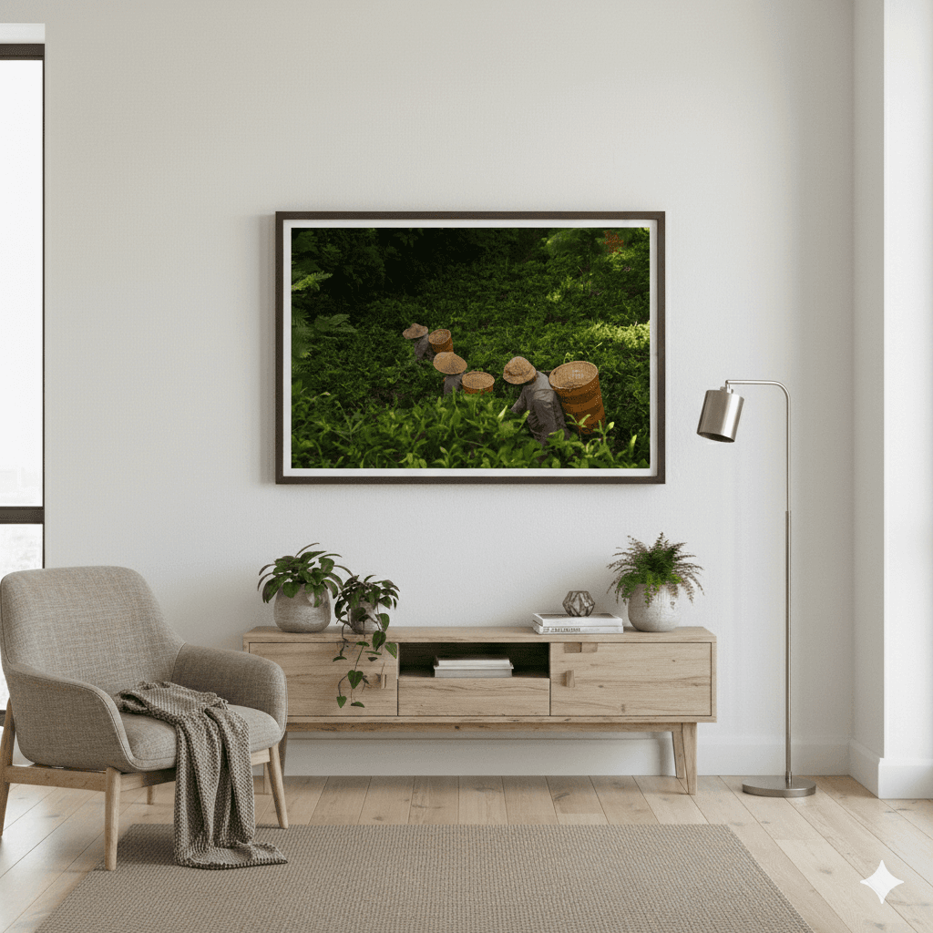 “The print feels serene and intentional. The frame craftsmanship is remarkable — understated but commanding presence. It transformed the entire room.”