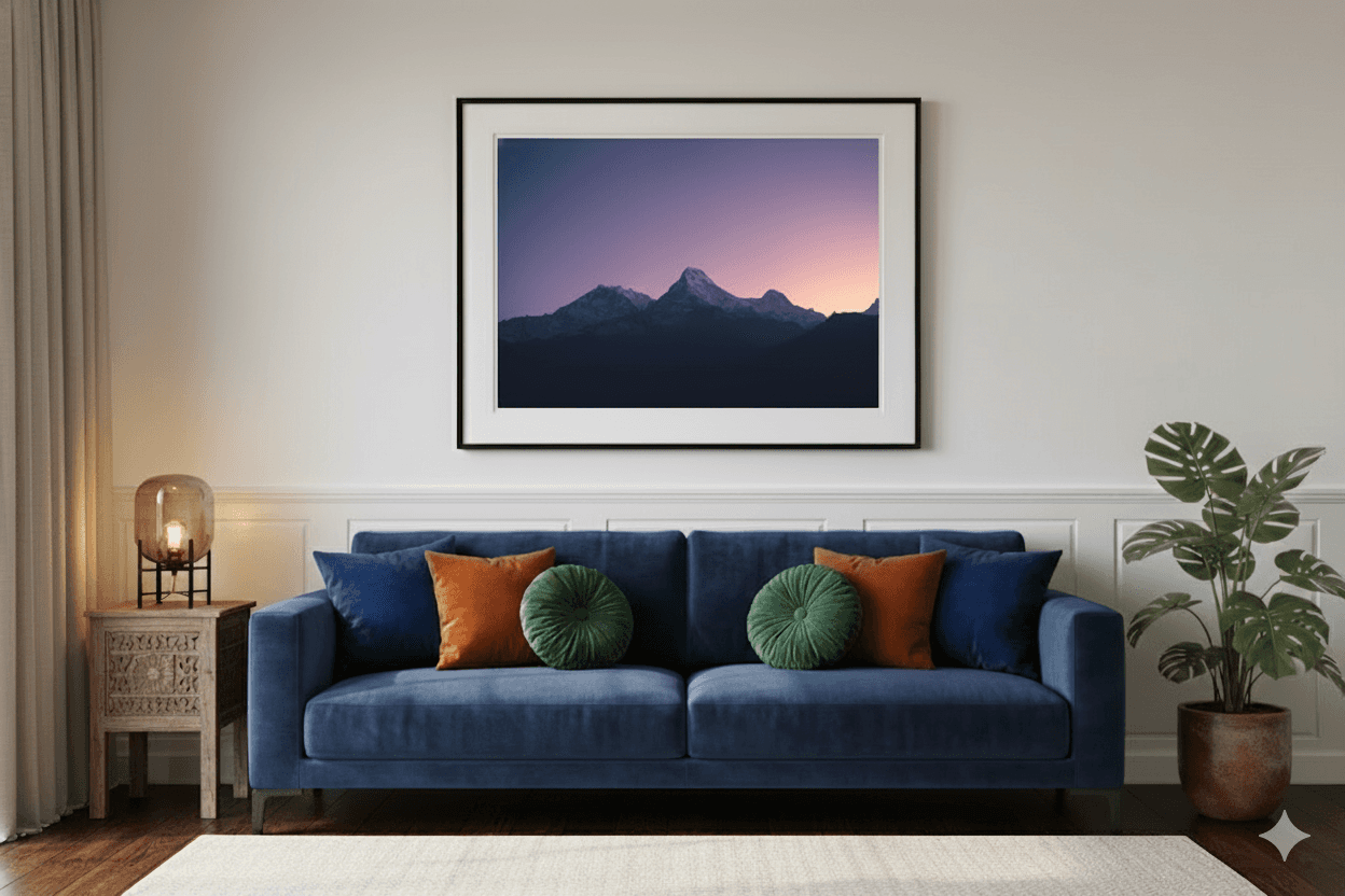 “The print feels serene and intentional. The frame craftsmanship is remarkable — understated but commanding presence. It transformed the entire room.”