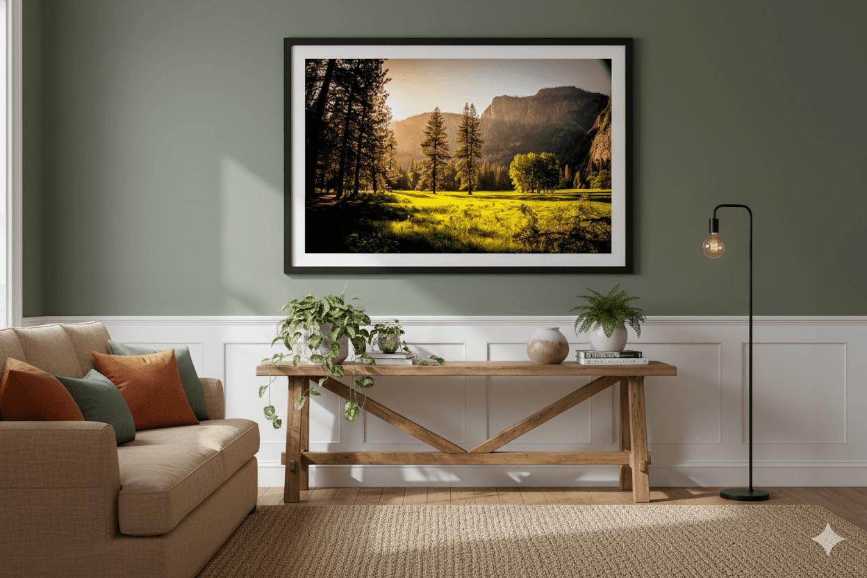 “The print feels serene and intentional. The frame craftsmanship is remarkable — understated but commanding presence. It transformed the entire room.”