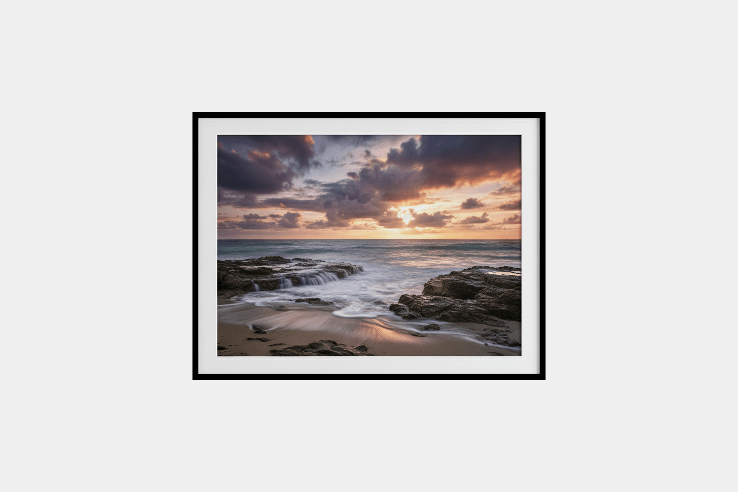 “The print feels serene and intentional. The frame craftsmanship is remarkable — understated but commanding presence. It transformed the entire room.”